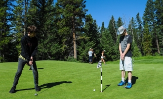 Hockey Alberta and the Hockey Alberta Foundation partnered with HEROS Hockey out of Calgary for the 2019 Rinks to Links program. The group had the unique experience of a trip to the mountains on Tuesday, July 23 to the Silvertip Golf Course in Canmore, and the Canmore Recreation Centre. The day started with a bus trip to Canmore, where the kids hit the driving range and putting green at Silvertip, with a lesson from the course professionals. After lunch, the group travelled to the Canmore Recreation Centre, where they were treated to a tour of the Canmore Eagles’ dressing room before hitting the ice for a one-hour on-ice session, with instruction from Hockey Alberta staff, and numerous volunteers, including members of the Eagles coaching staff. On behalf of all Rinks to Links participants, the Hockey Alberta Foundation would like to thank Every Kid Every Community sponsor, ATB Wealth, as well as Silvertip Golf Course and the Canmore Eagles for their support.
